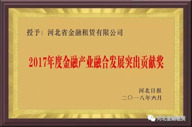 榮譽 | 河北金租榮獲“金融產業融合發展突出貢獻獎”