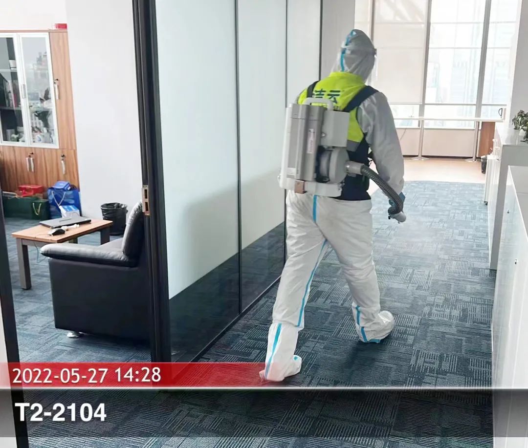 復(fù)工之前,對接物業(yè)方對辦公區(qū)域進(jìn)行消殺,全面消毒,不留死角,讓同事們安心歸隊